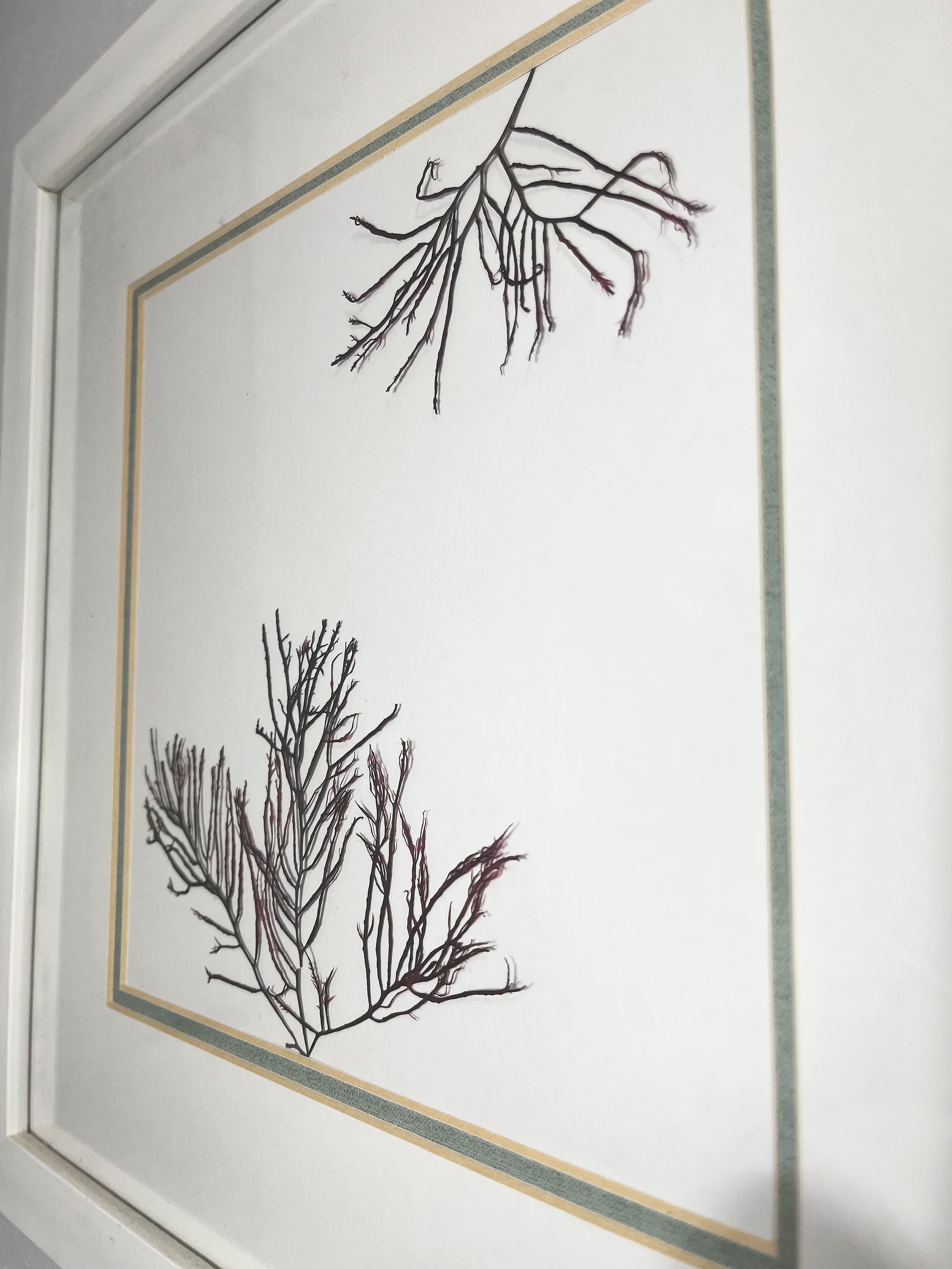 Every design is created using algae that I hand-collect right from our coastline! All framed artwork are original pieces of the pressed algae itself preserved behind the glass. Tote bags, greeting cards, and stickers are re-prints of my original artwork. All color is 100% natural and unaltered.