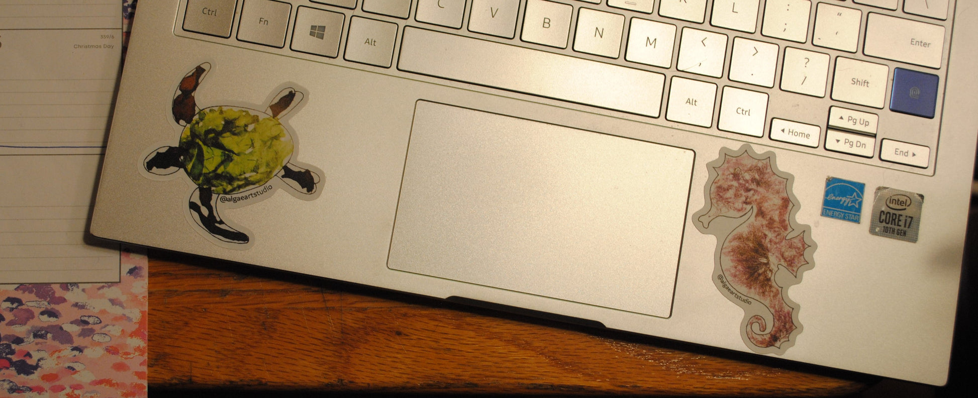 These beautiful pink seahorse stickers are re-prints of my original artwork, created with algae hand-picked right from our waters along the northeast coastline. All color is 100% natural and unaltered. The stickers measure 3 inches tall and 1.7 inches at their widest point. The perfect size for laptops or water bottles!