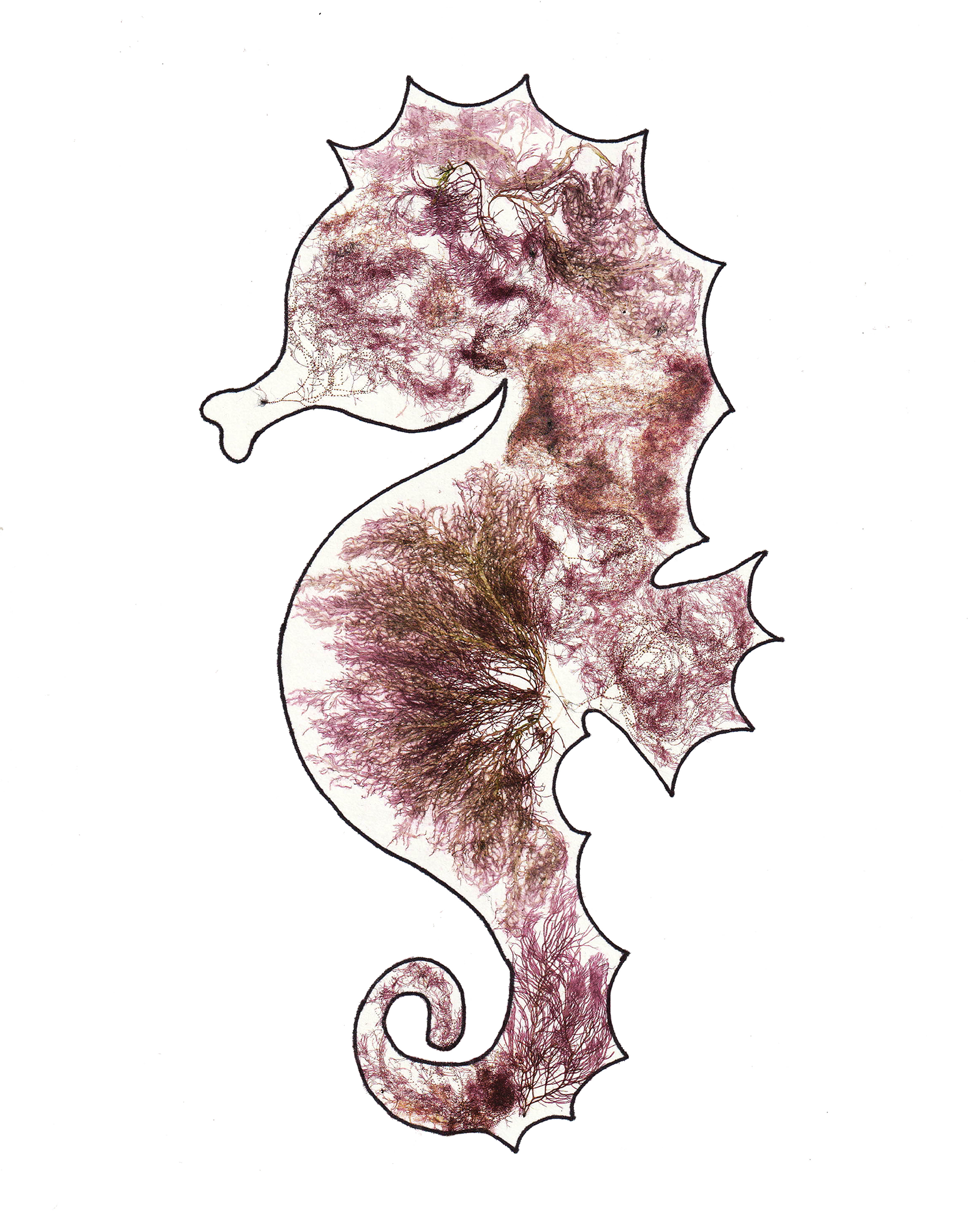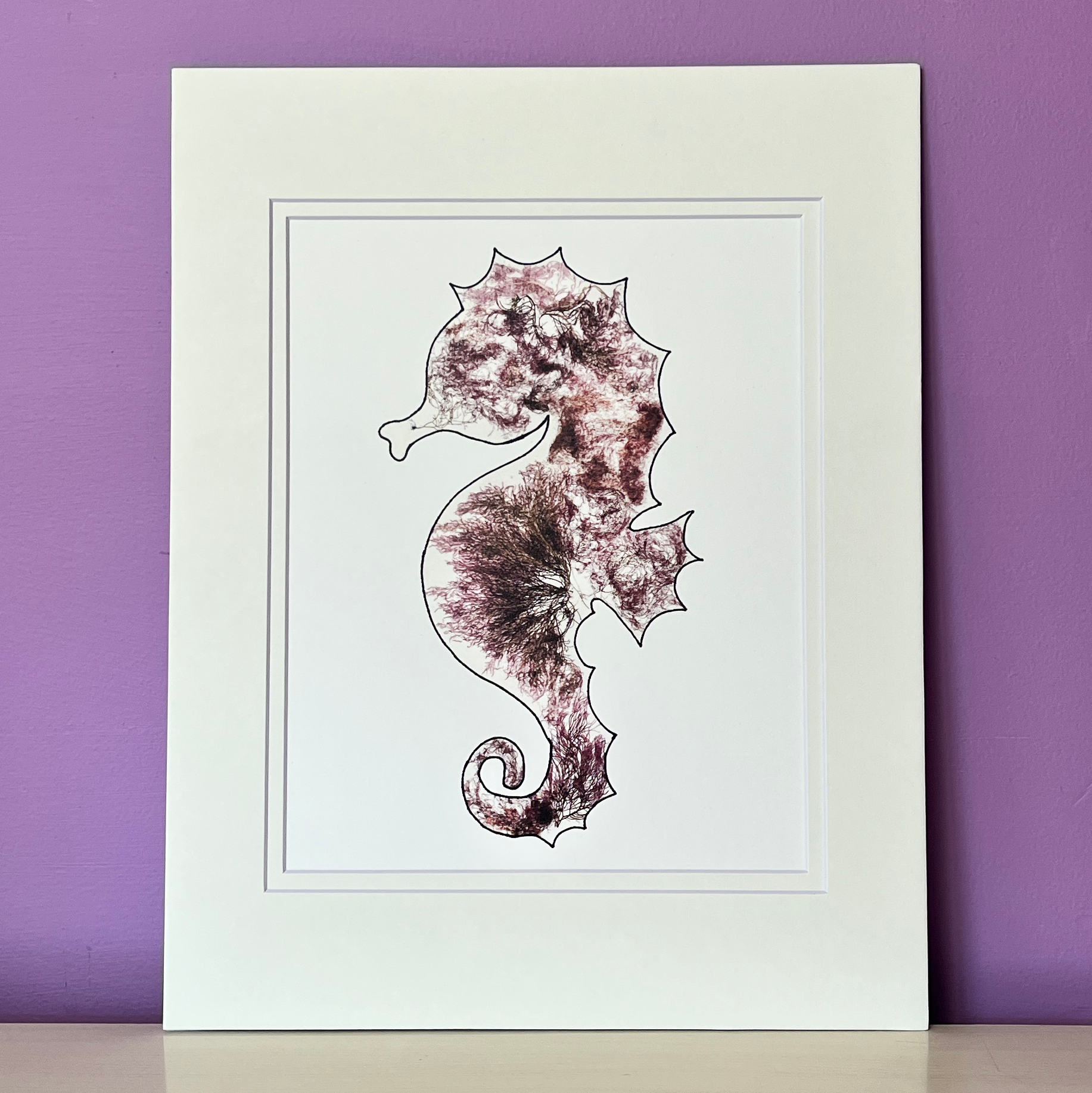 This beautiful seahorse print showcases my original artwork, created with algae hand-picked right from our waters along the northeast coastline. All color is 100% natural and unaltered.
