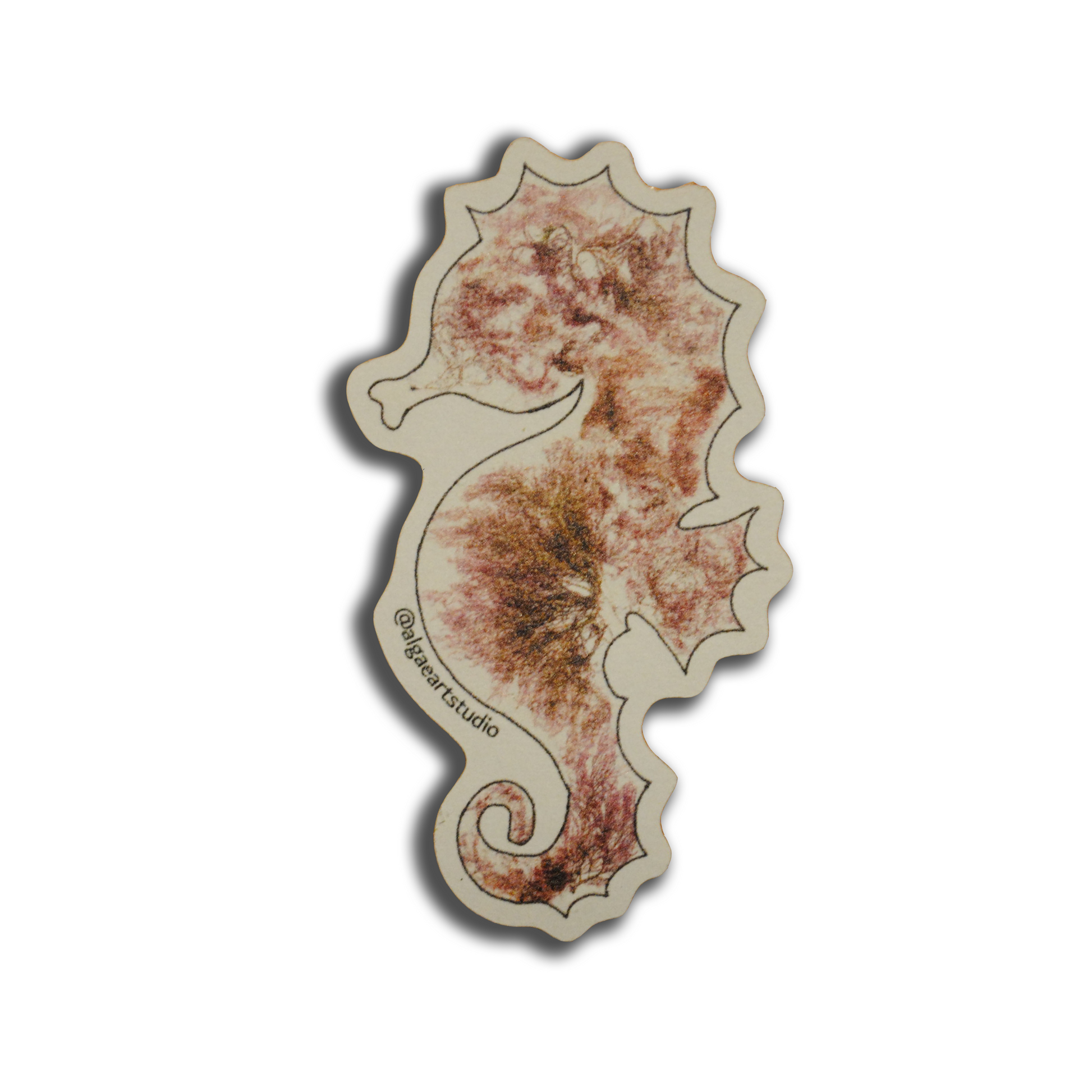 Every design is created using algae that I hand-collect right from our coastline! All framed artwork are original pieces of the pressed algae itself preserved behind the glass. Tote bags, greeting cards, and stickers are re-prints of my original artwork. All color is 100% natural and unaltered.
