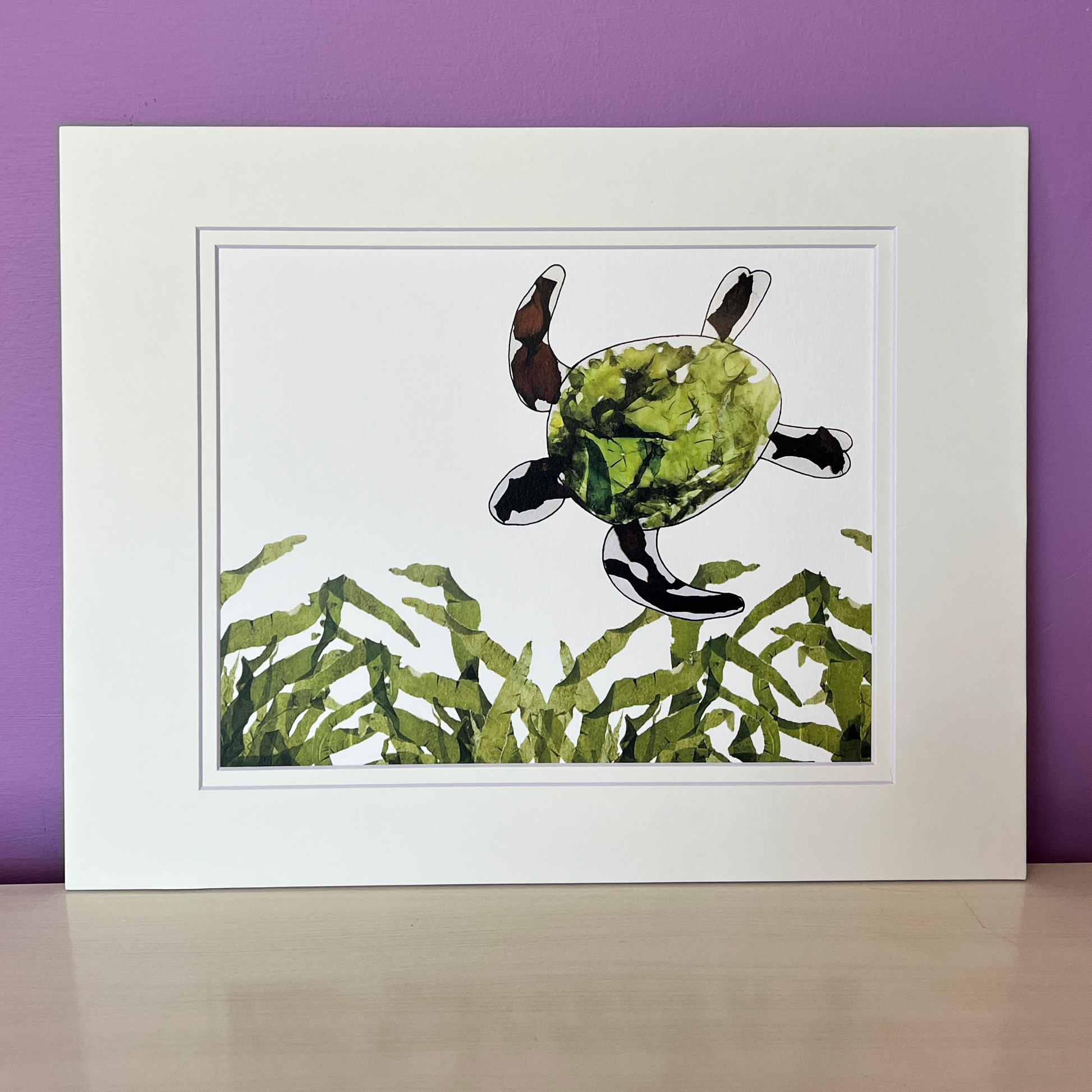 This beautiful turtle print showcases my original artwork, created with algae hand-picked right from our waters along the northeast coastline. All color is 100% natural and unaltered.