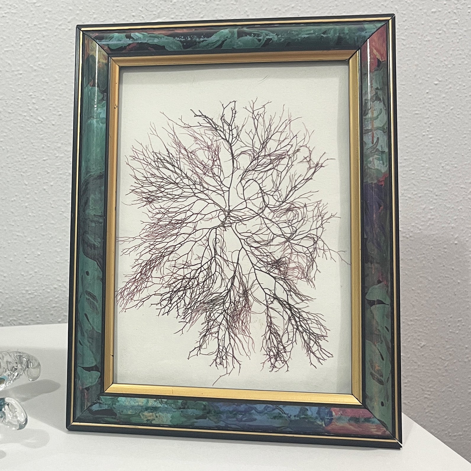 This incredible branched algae with hints of light pink, red, and black resembles a firework. Its 5 x 7 frame offers the perfect colorful border.